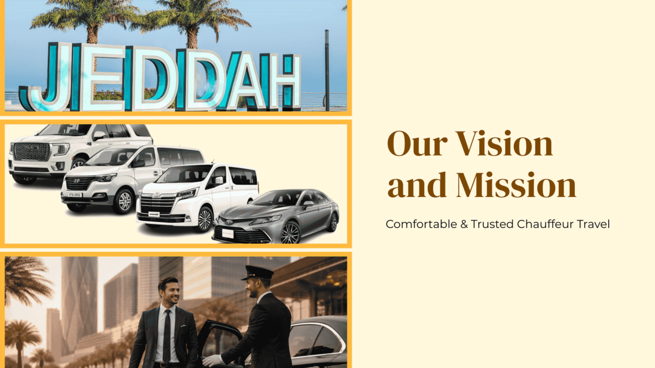 Airport transfers, Umrah travel, private drivers, and business chauffeur services — all starting from Jeddah.